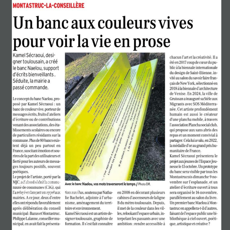 Vous avez la chance de pouvoir participer à la création d'une œuvre collective installée dans l'espace public. Deux bancs vont être créés par les habitants et seront installés à Bazus et à Montastruc-La-Conseillère.